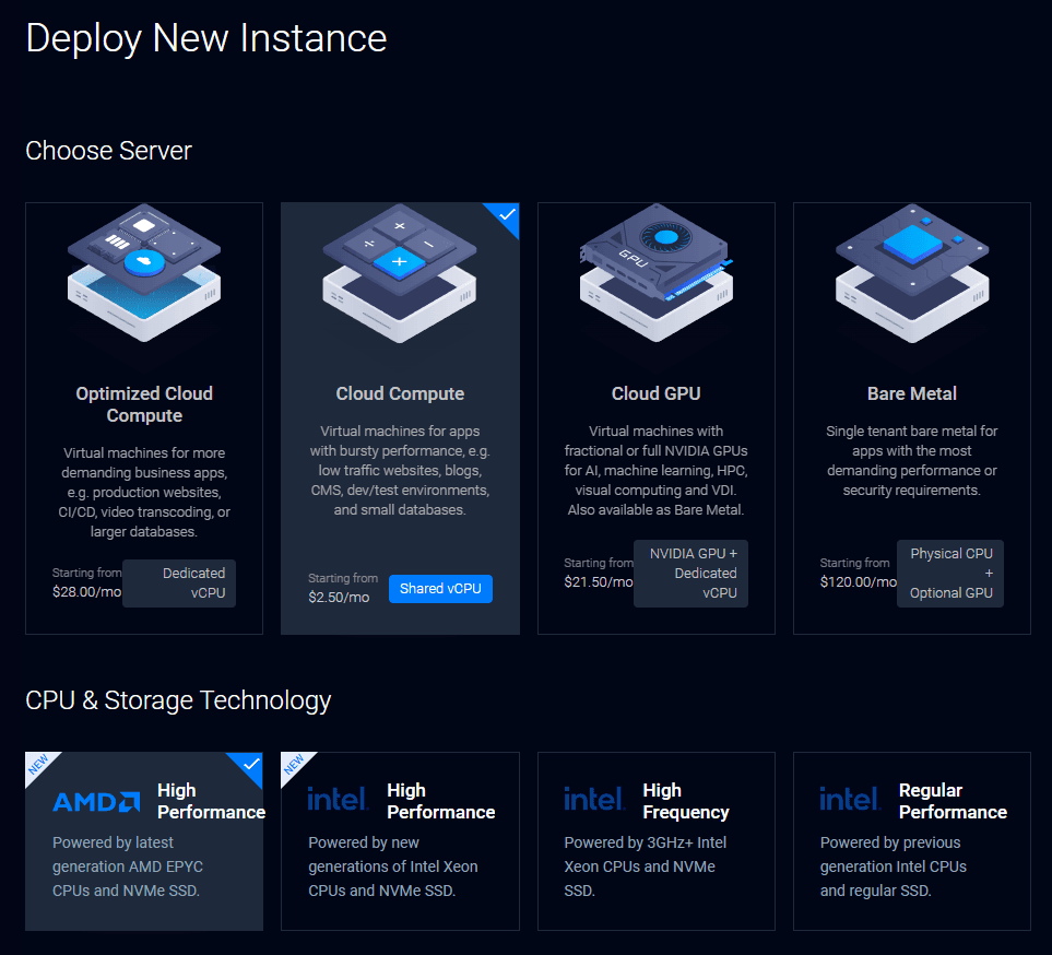 Although I’ll be deploying on Vultr, the steps will be very similar on any other VPS/Compute provider. I am not affiliated with Vultr in any way, I just enjoy the simplicity and performance of their service. You can use any hosting service you like, and the steps should be the same if you pick the same server OS.