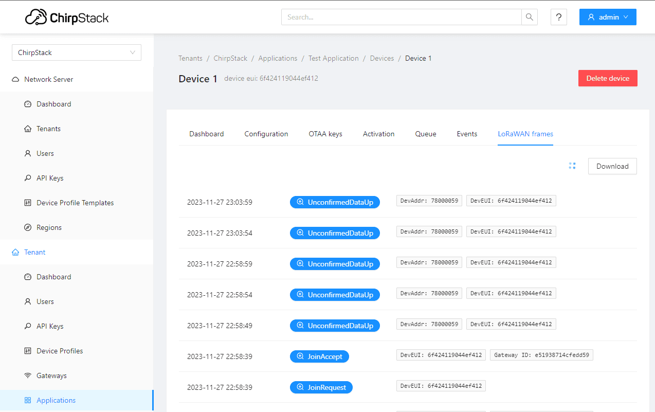 If you want to shut down the Chirpstack services later, use Ctrl-C.