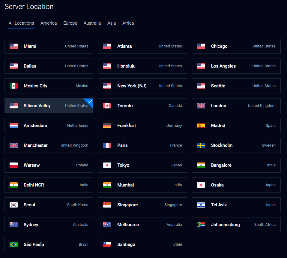 Next, select the location closest to the region you will be servicing. In this case, it will be in the US.