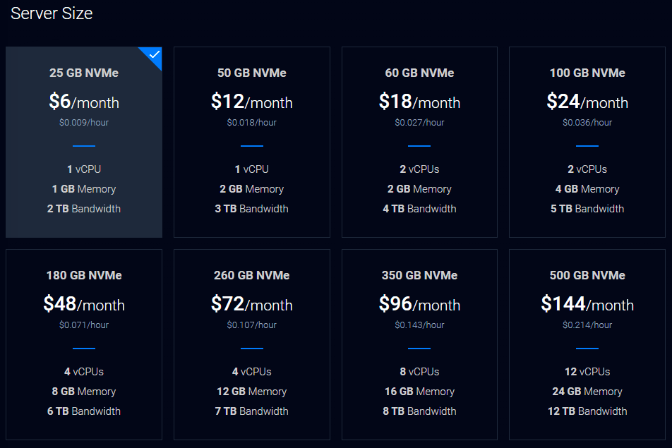 Next, we’ll select the server size; the smallest will be plenty to start.