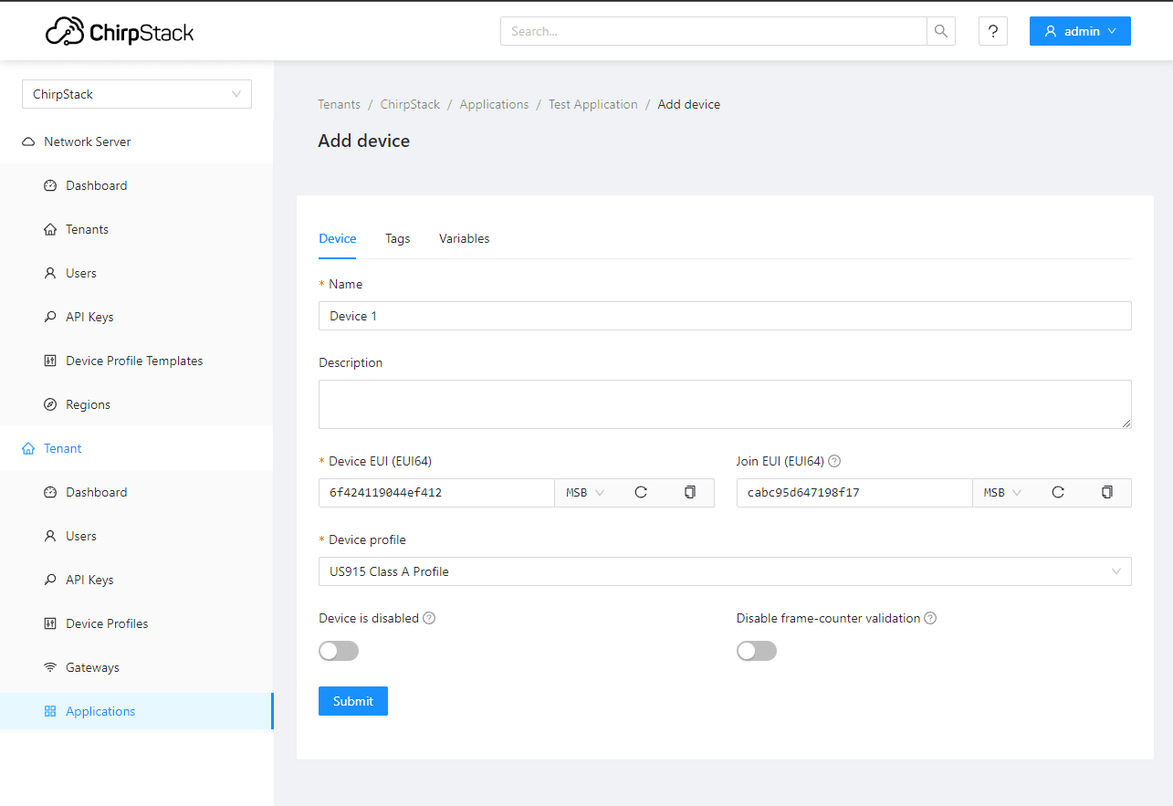 The very last step is to add the device in Chirpstack.