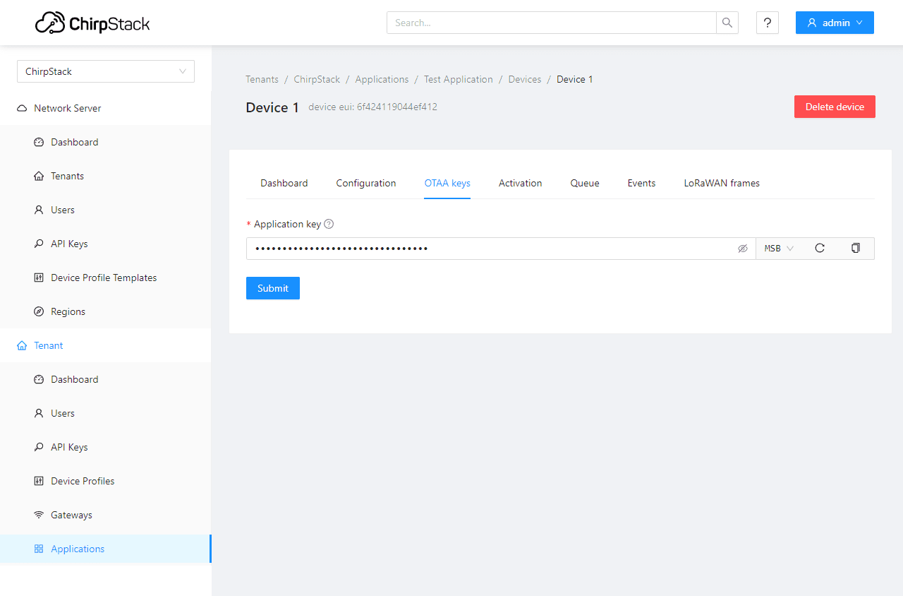 Finally, add or create an AppKey for your device.